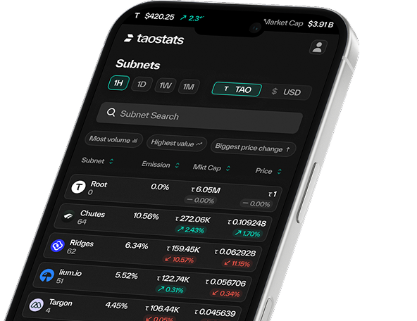 taostats is funded by public delegation. Support us by delegating stake to the taostats.io validator