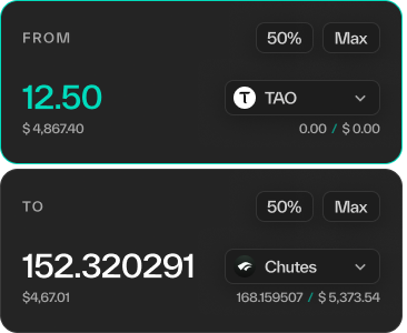 Swap your TAO between subnets in just a few clicks. No complex bridges or extra steps — just smooth, secure transactions built right into your dashboard.